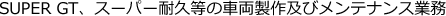 GT、S耐等の車両製作、メンテナンスやチーム運営をお任せください。